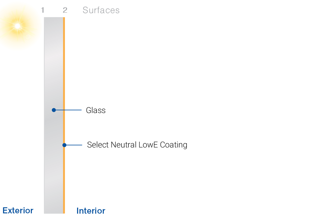 Select single glazed units (SGU) that contains a pyrolytic Low Emissivity glass (LowE). Also known as a “hardcoat”, this range offers multiple applications.