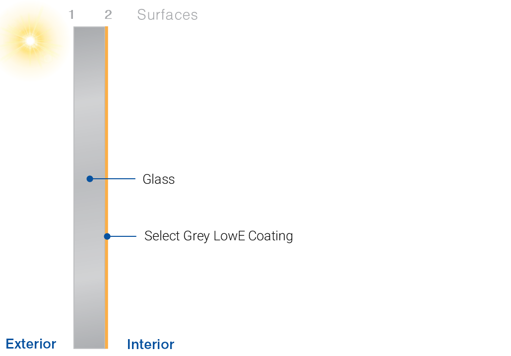 - for further blockage of Solar Heat (lower SHGC) and Glare Factors (lower VLT) while also adding an obvious Grey aesthetic to the glass.